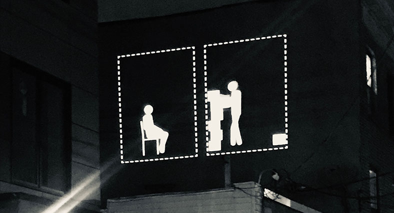These series of works consist of site-specific animations within the public spaces in cities. A social project is done in each city as the foundation of the work. The “Exitman” sign is the main character in these installations that together with its contexts tells stories of the present and includes themes such as politics, love, humour, and contemporary events etc. The sites and the narratives makes the work. To use the specifics of each site is a fundamental part in telling a story.